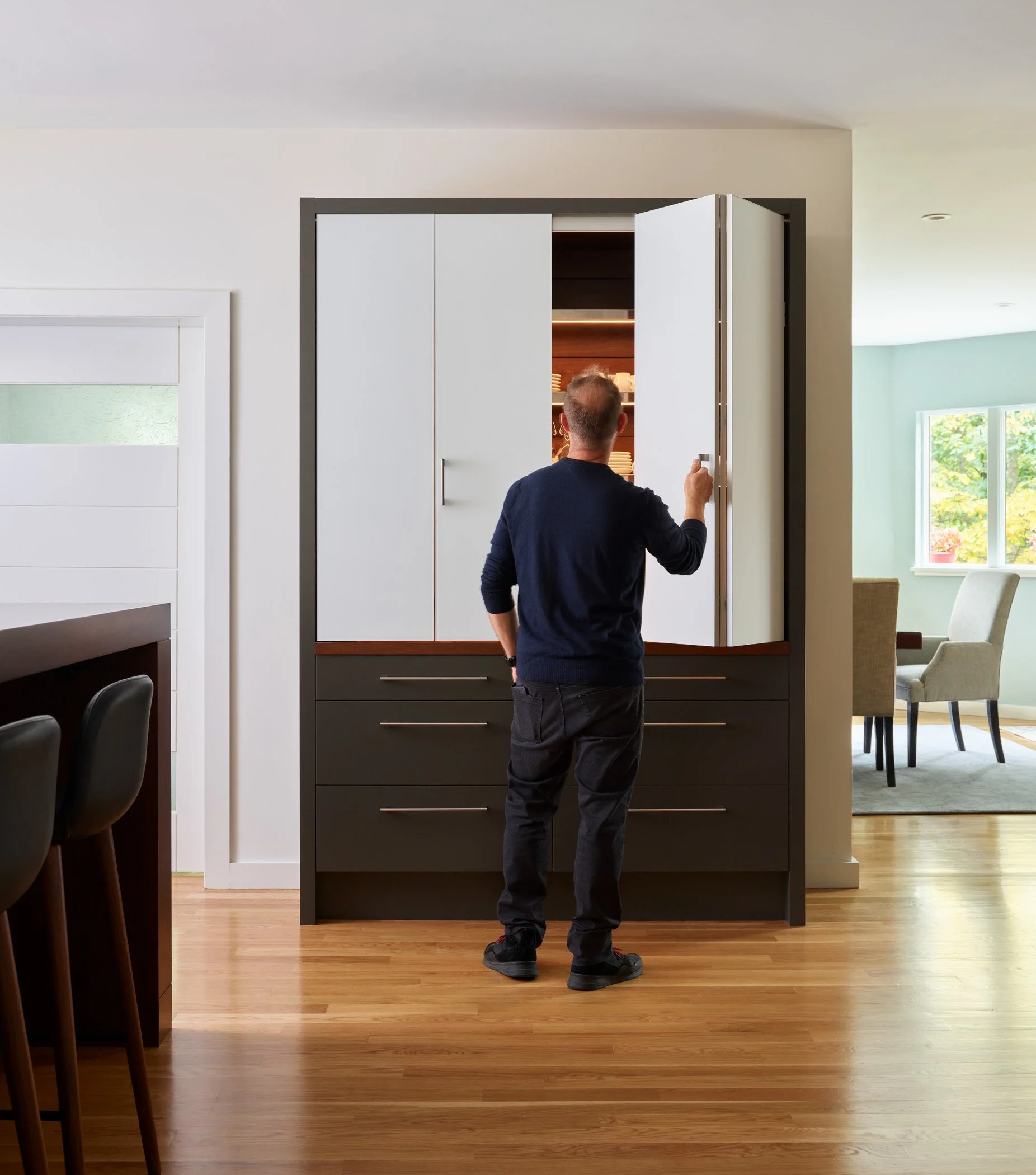The project goals were to better connect the existing home to its lush surrounding landscape, create new opportunities to enjoy outdoor activities, and improve the visibility of the main front entry. We achieved these goals with thoughtful space planning, an updated material palette and high-quality craftsmanship.